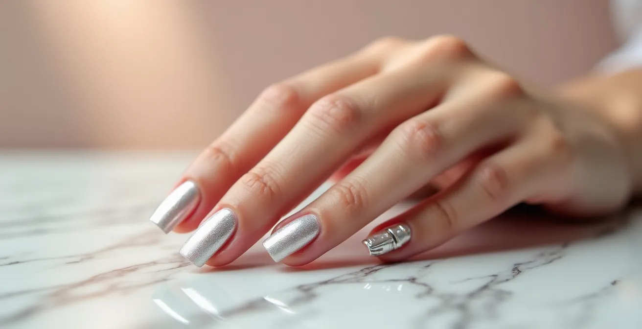 Das Schöne an diesem Trend ist seine Anpassungsfähigkeit. Während die klassische Variante auf einer hellen Basis beruht, lässt sich der Chrom-Effekt auf jeder beliebigen Farbe anwenden, um unterschiedliche Effekte zu erzielen. Ein Hauch von Chrom über einem Nude-Ton wirkt subtil und edel, während er auf einer dunklen Farbe für einen dramatischen, spiegelnden Look sorgt. So wird der virale Trend zu Ihrer ganz persönlichen Persönlichkeits-Signatur.